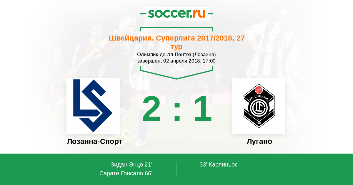Лозанна-Спорт - Лугано: обзор матча 2 апреля 2018
