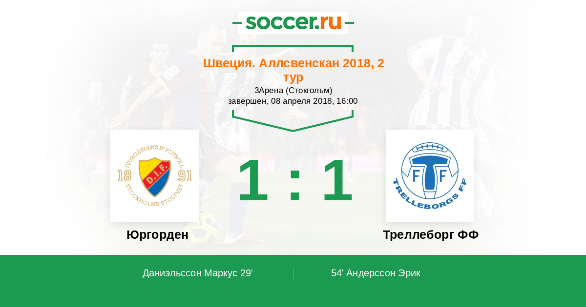 Юргорден - Треллеборг ФФ: обзор матча 8 апреля 2018