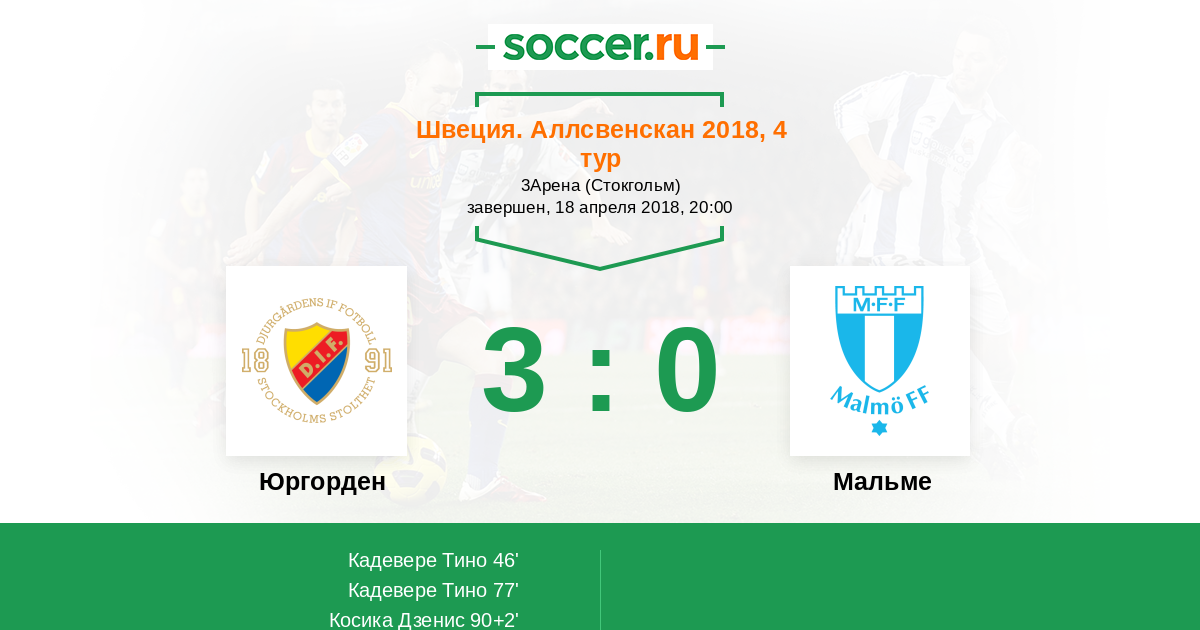 Юргорден - Мальме: обзор матча 18 апреля 2018