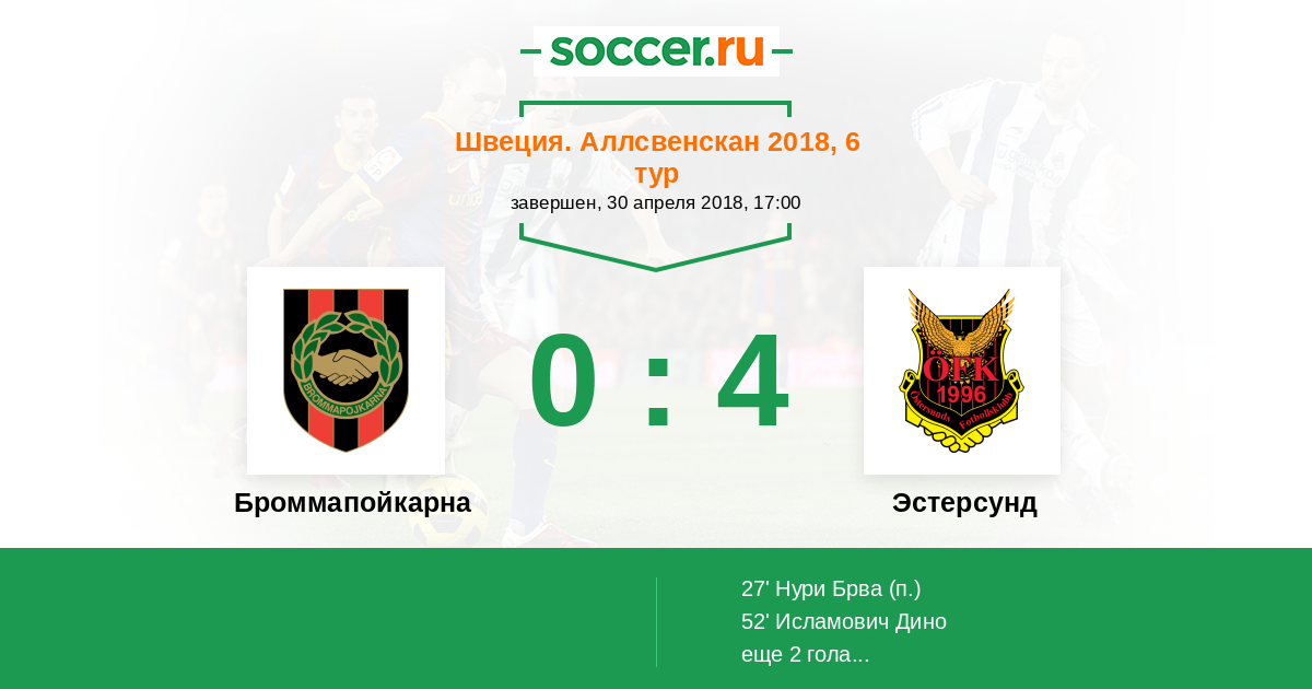 Броммапойкарна - Эстерсунд: обзор матча 30 апреля 2018