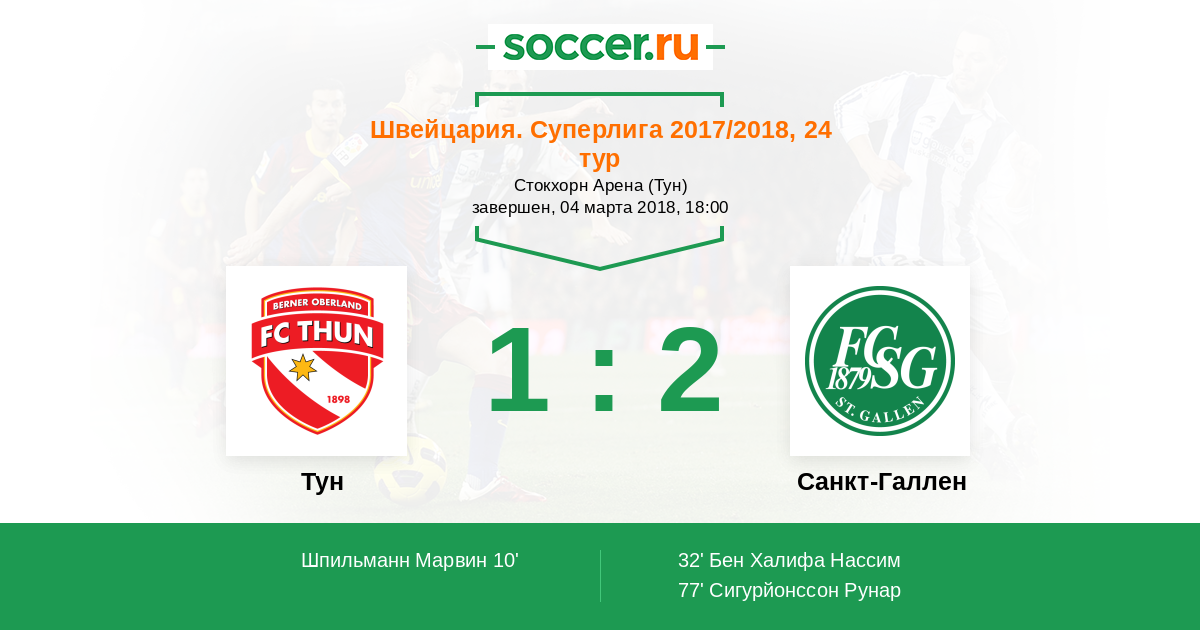 Тун - Санкт-Галлен: обзор матча 4 марта 2018