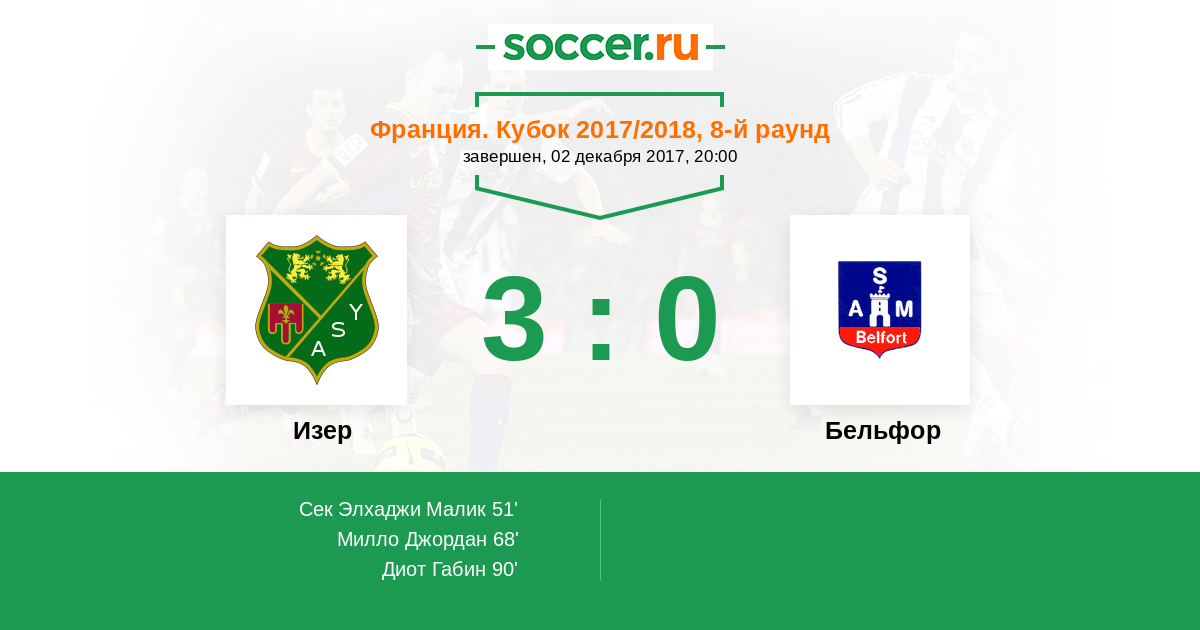 Изер - Бельфор: обзор матча 2 декабря 2017