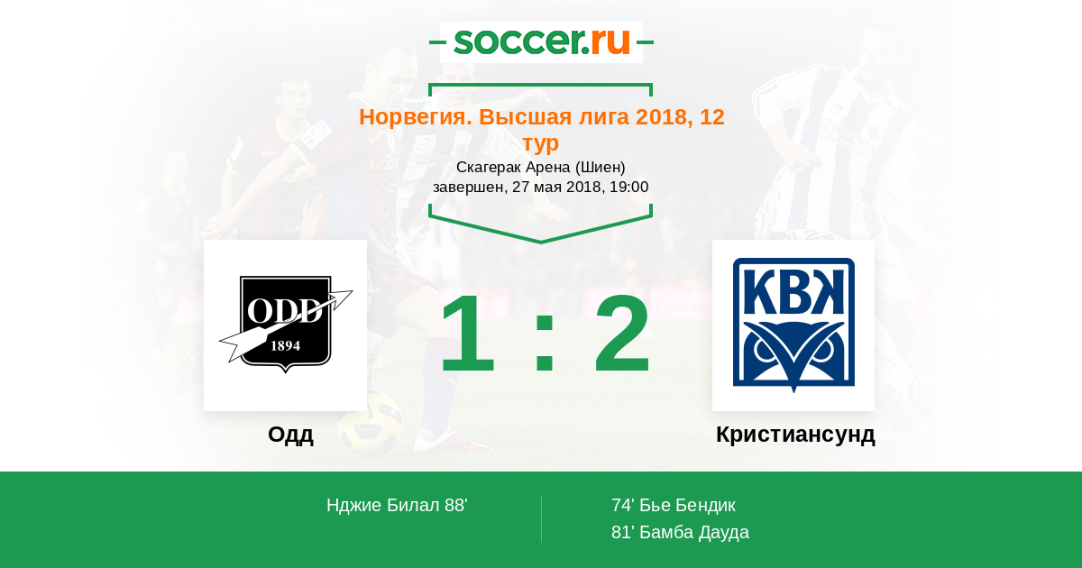 Одд - Кристиансунд: обзор матча 27 мая 2018