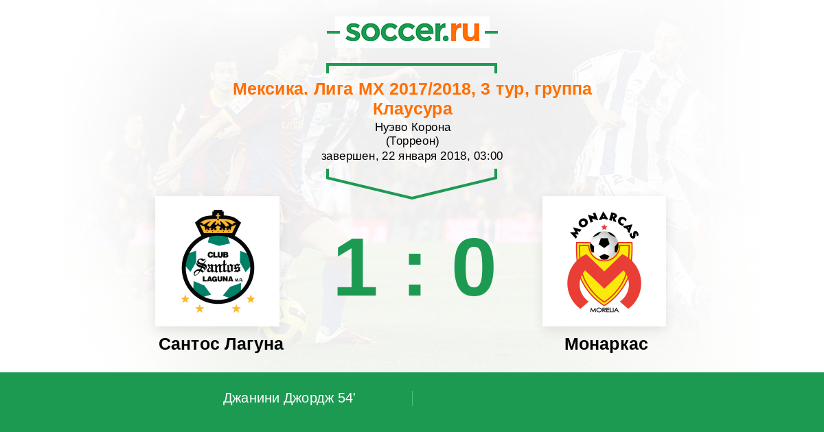 Сантос Лагуна - Монаркас: обзор матча 22 января 2018