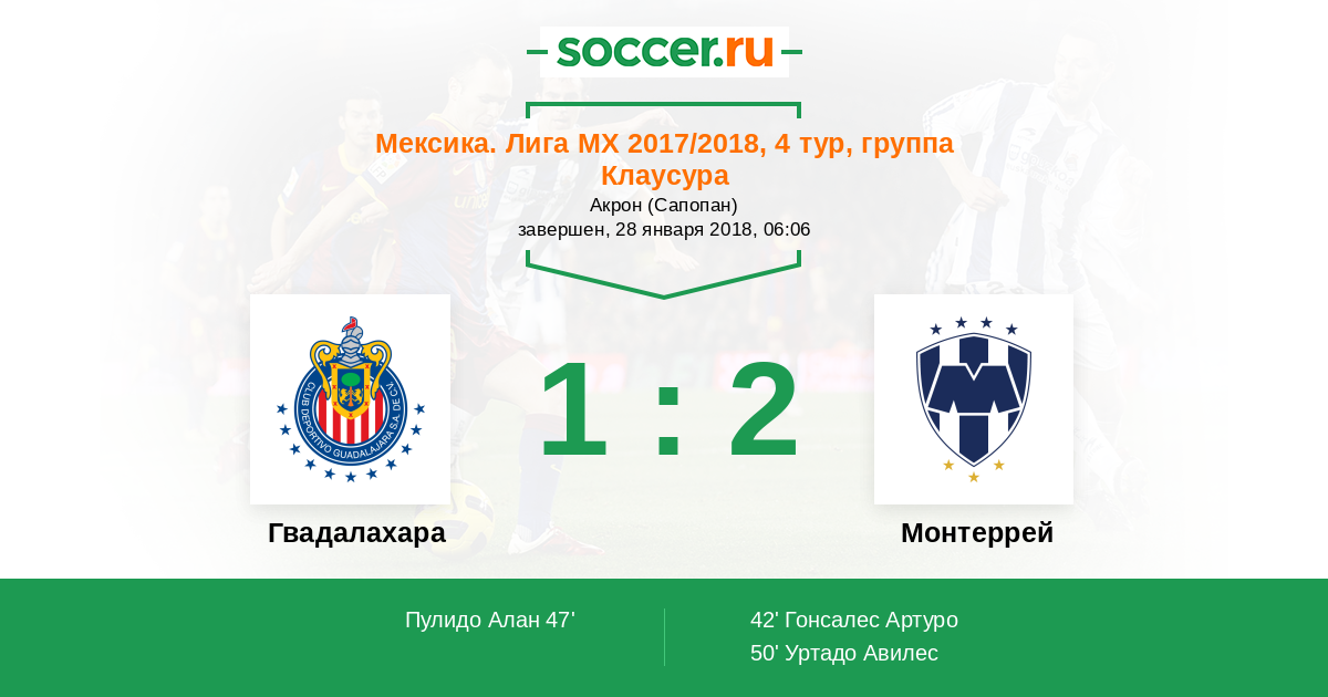 Гвадалахара - Монтеррей: обзор матча 28 января 2018