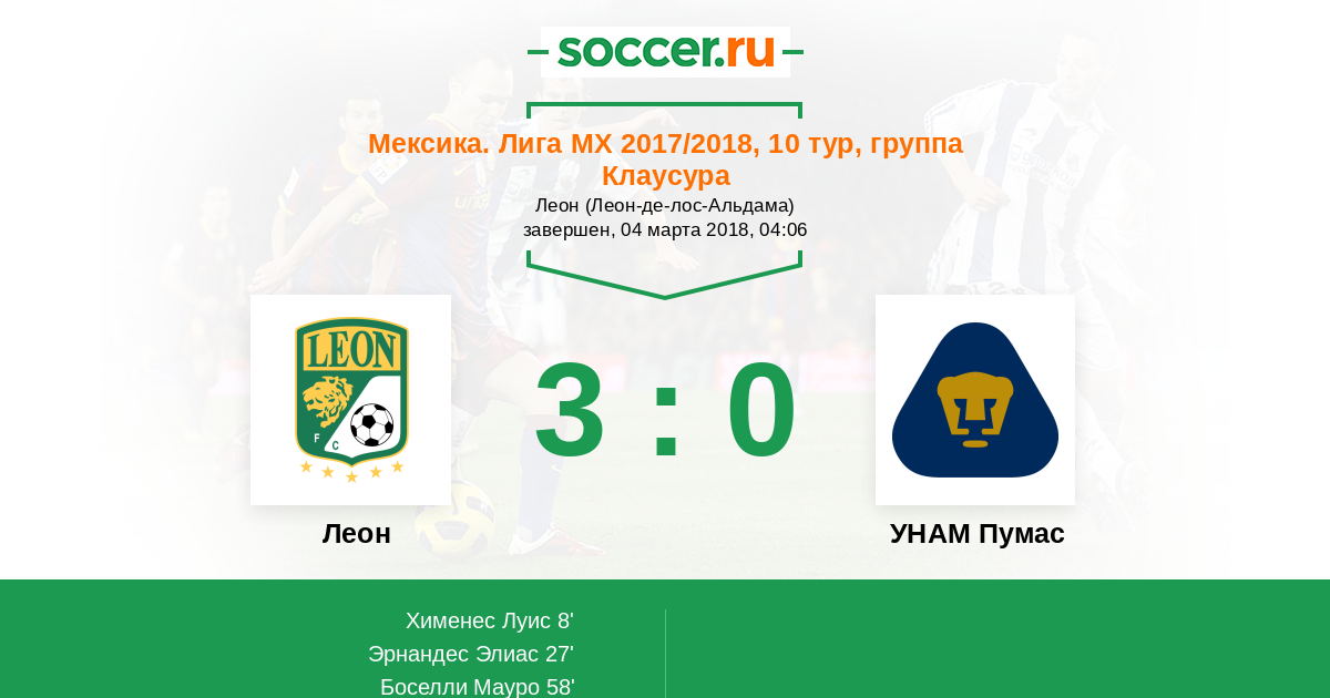 Леон - УНАМ Пумас: обзор матча 4 марта 2018