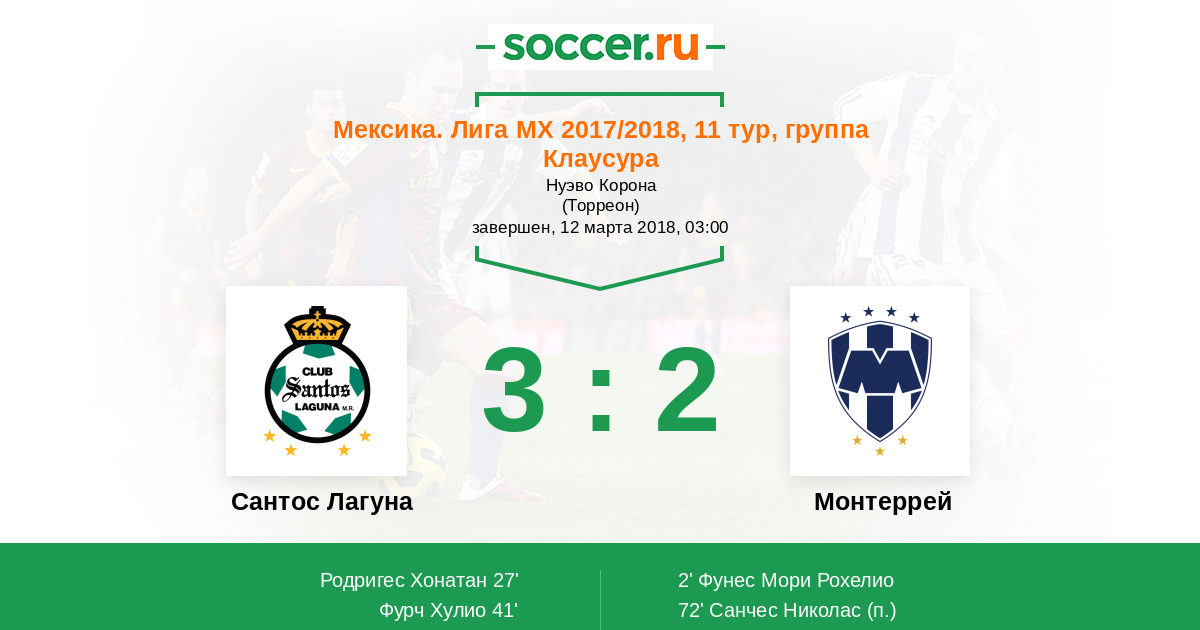 Сантос Лагуна - Монтеррей: обзор матча 12 марта 2018
