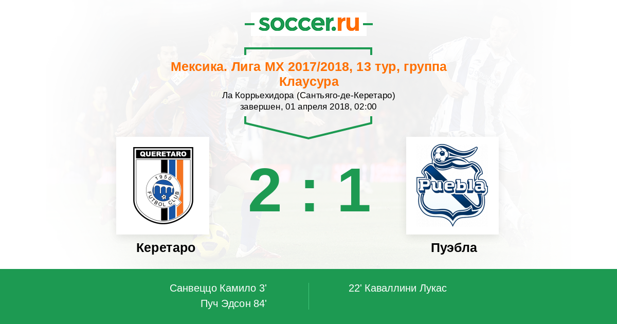 Керетаро - Пуэбла: обзор матча 1 апреля 2018