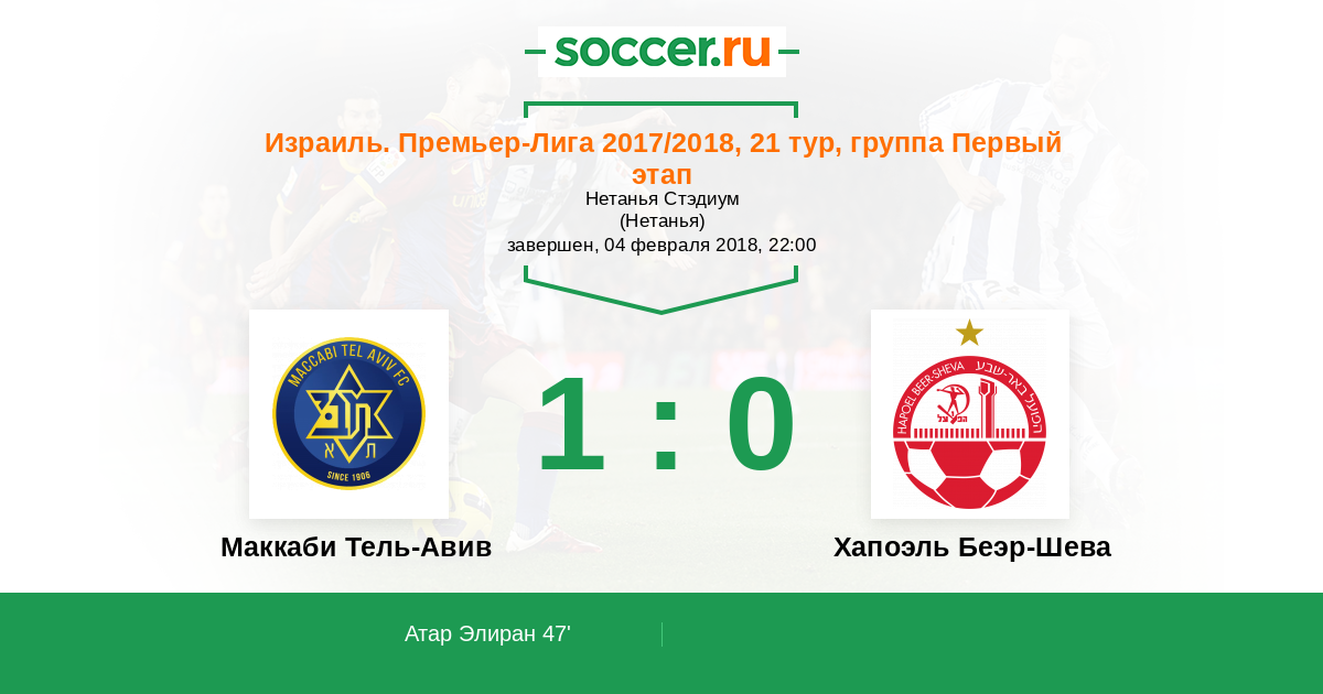 Маккаби Тель-Авив - Хапоэль Беэр-Шева: обзор матча 4 февраля 2018