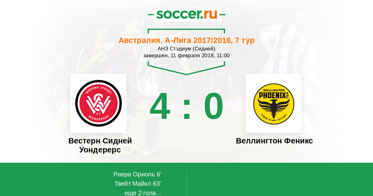 Вестерн Сидней Уондерерс - Веллингтон Феникс: обзор матча 11 февраля 2018