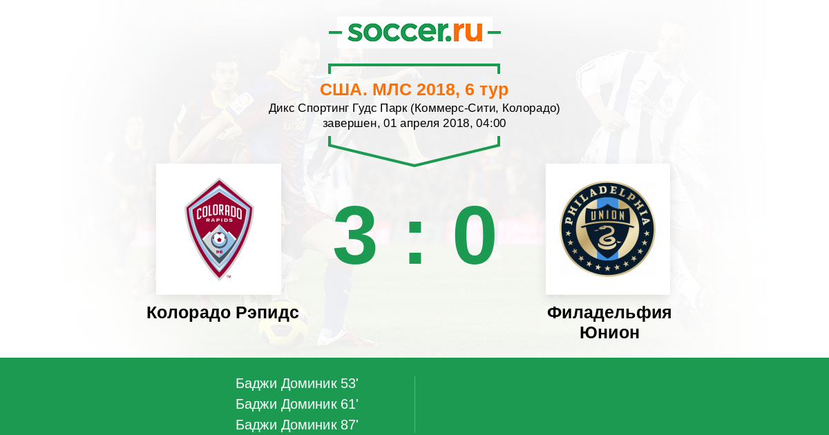 Колорадо Рэпидс - Филадельфия Юнион: обзор матча 1 апреля 2018