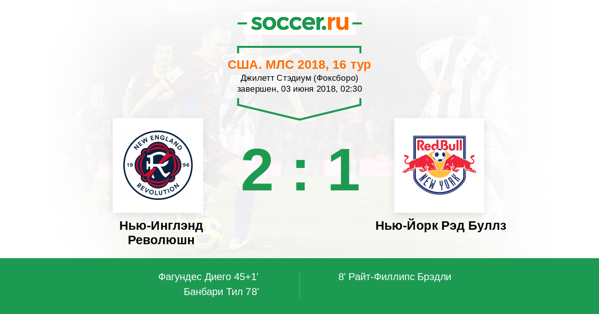 Нью-Инглэнд Революшн - Нью-Йорк Рэд Буллз: обзор матча 3 июня 2018