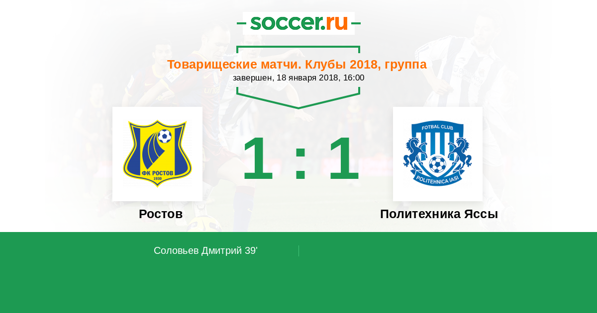 Ростов - Политехника Яссы: обзор матча 18 января 2018