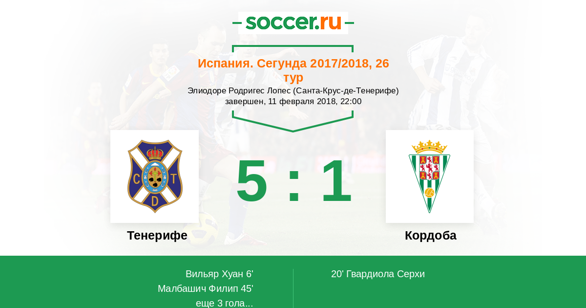 Тенерифе - Кордоба: обзор матча 11 февраля 2018