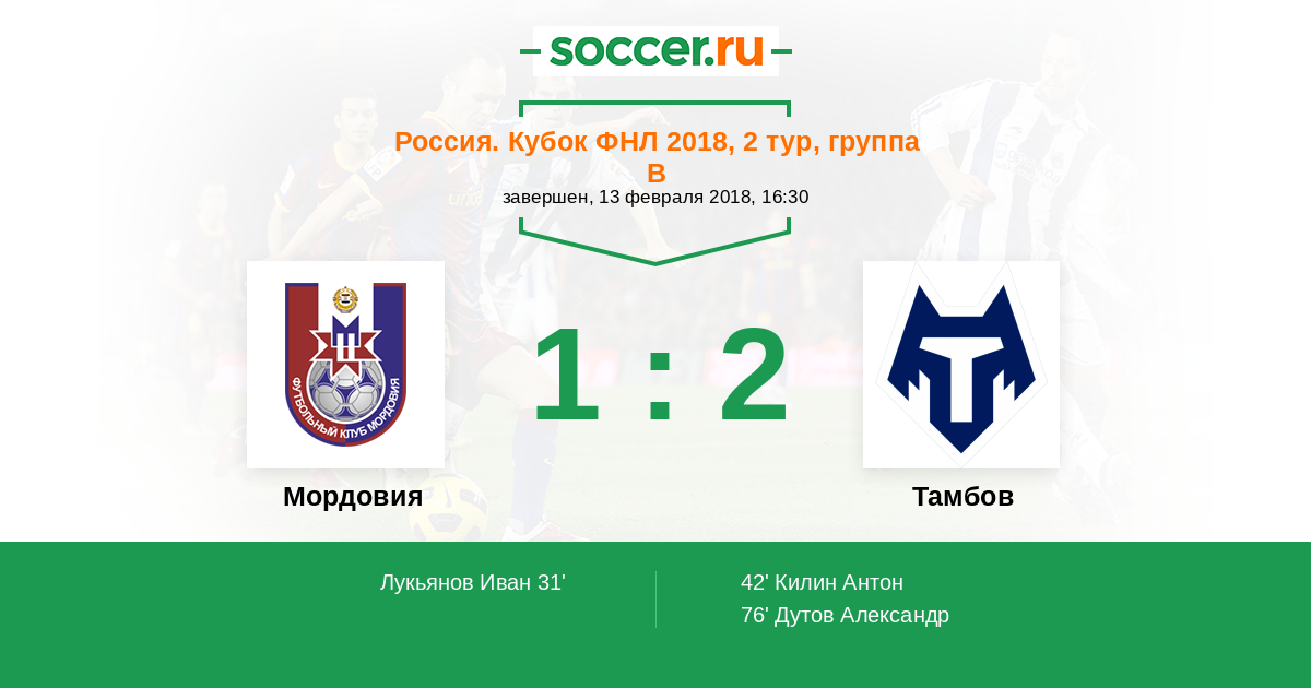 Мордовия - Тамбов: обзор матча 13 февраля 2018