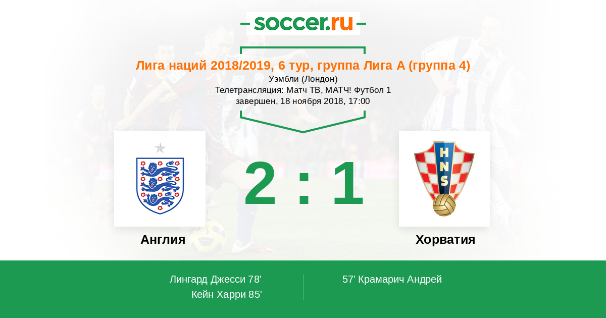 Приветствуем всех любителей футбола! Вот и подошел к концу групповой этап первого розыгрыша Лиги наций УЕФА. Мы с вами отправляемся на «Уэмбли», где сборная Англии примет команду Хорватии. Начинаем в 17:00!
