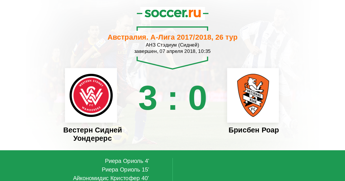 Вестерн Сидней Уондерерс - Брисбен Роар: обзор матча 7 апреля 2018