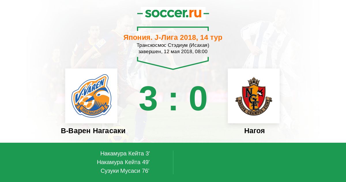 В-Варен Нагасаки - Нагоя: обзор матча 12 мая 2018
