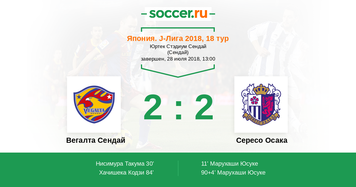 Вегалта Сендай - Сересо Осака: обзор матча 28 июля 2018