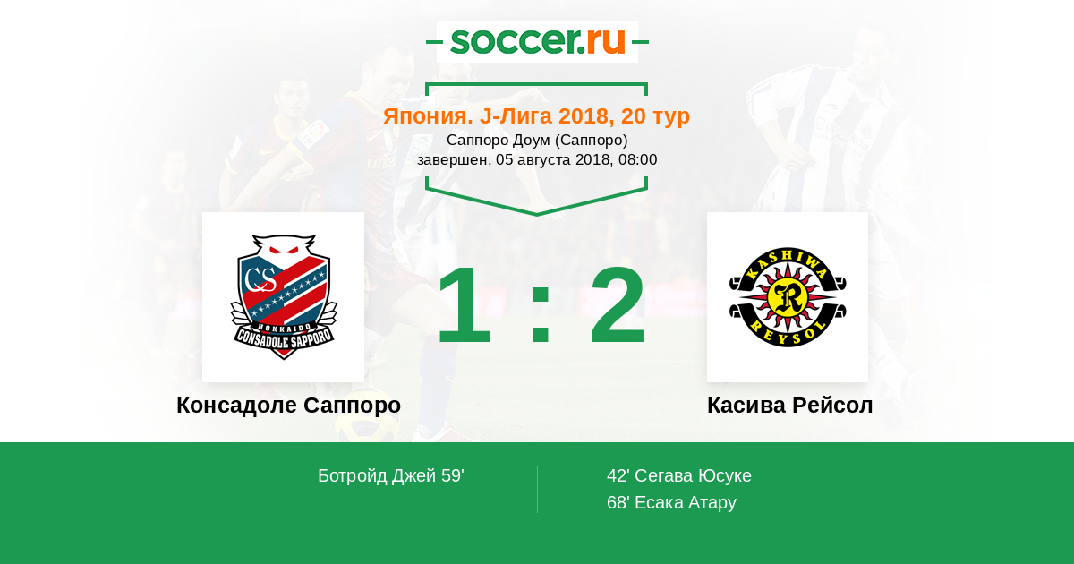 Консадоле Саппоро - Касива Рейсол: обзор матча 5 августа 2018