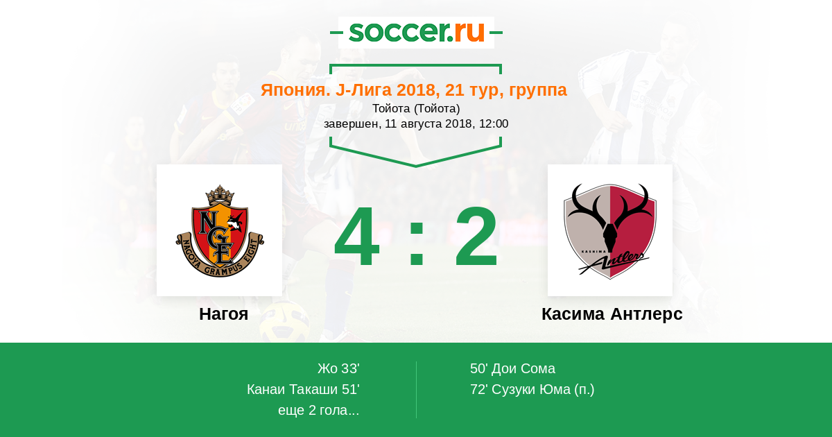 Нагоя - Касима Антлерс: обзор матча 11 августа 2018