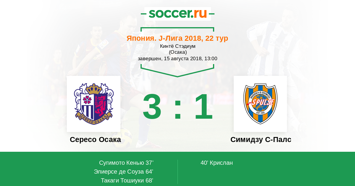 Сересо Осака - Симидзу С-Палс: обзор матча 15 августа 2018