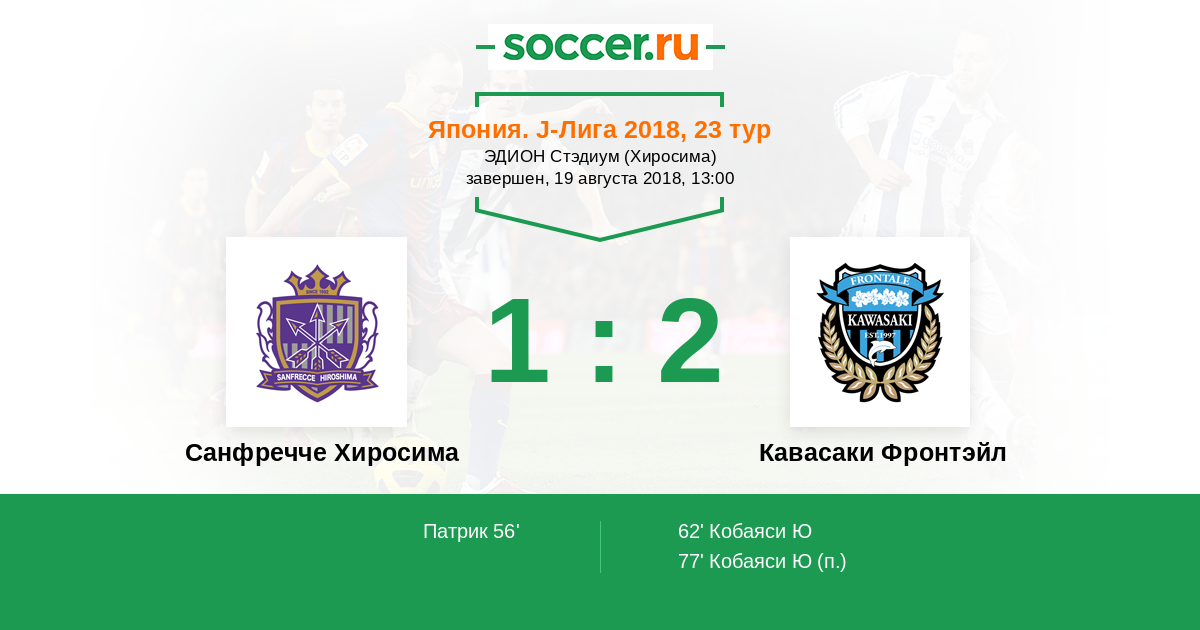 Санфречче Хиросима - Кавасаки Фронтэйл: обзор матча 19 августа 2018