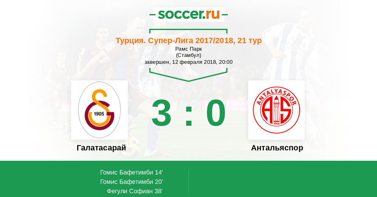 Галатасарай - Антальяспор: обзор матча 12 февраля 2018