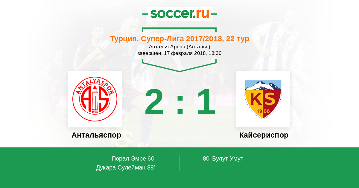 Антальяспор - Кайсериспор: обзор матча 17 февраля 2018