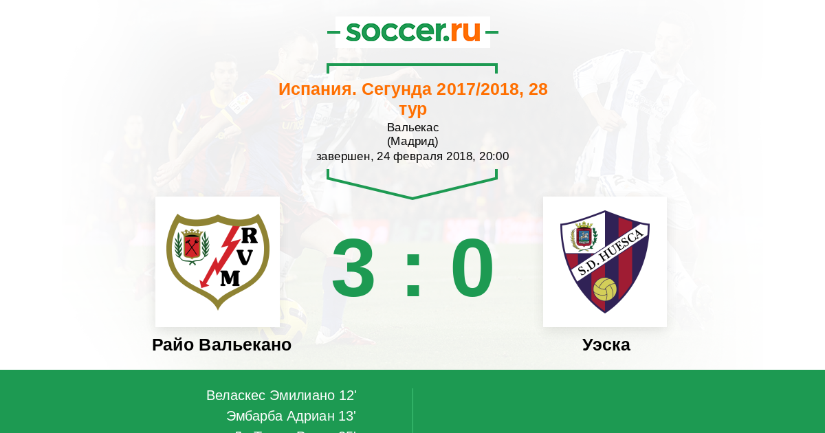 Райо Вальекано - Уэска: обзор матча 24 февраля 2018