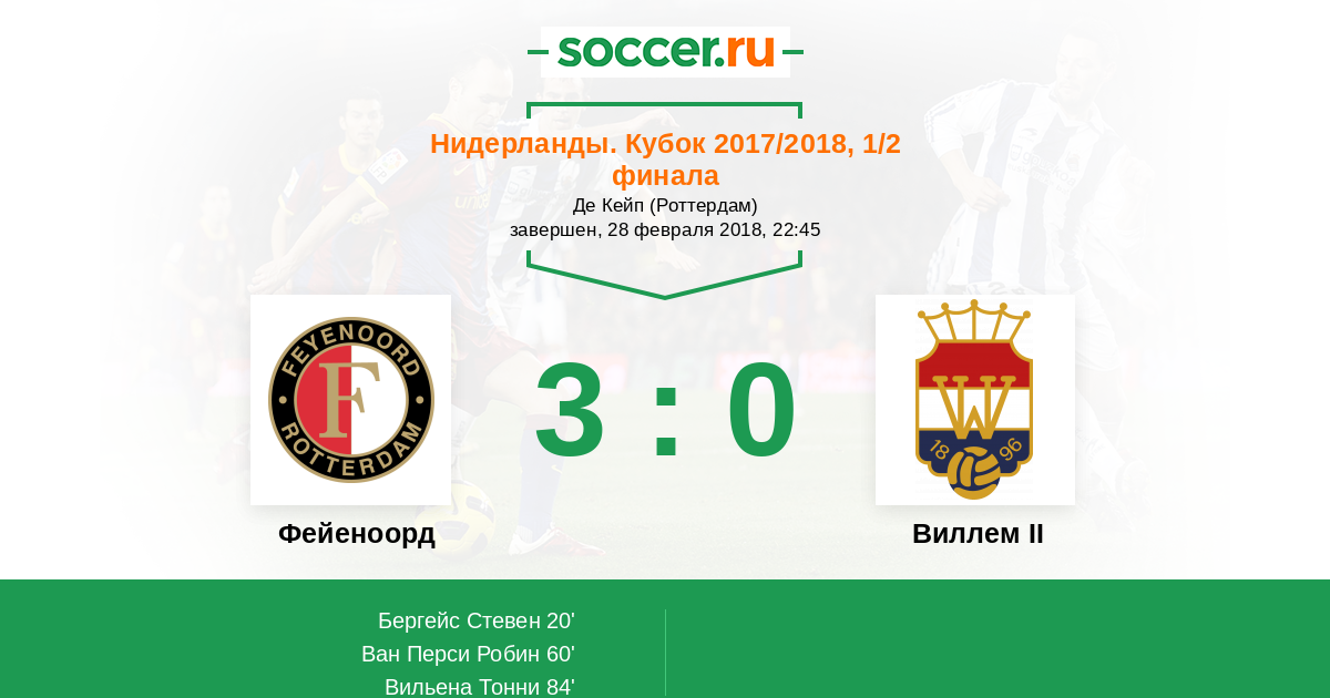 Фейеноорд - Виллем II: обзор матча 28 февраля 2018