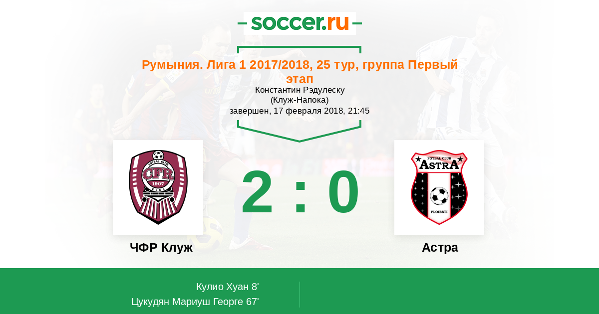 ЧФР Клуж - Астра: обзор матча 17 февраля 2018