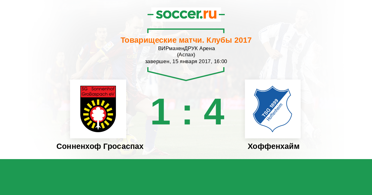 Сонненхоф Гросаспах - Хоффенхайм: обзор матча 15 января 2017