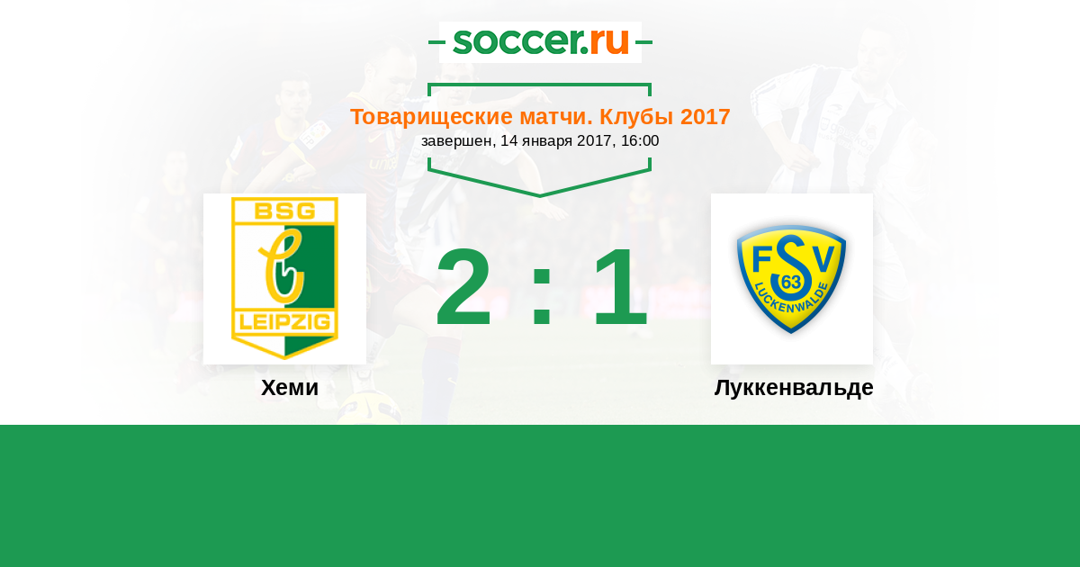 Хеми - Луккенвальде: обзор матча 14 января 2017