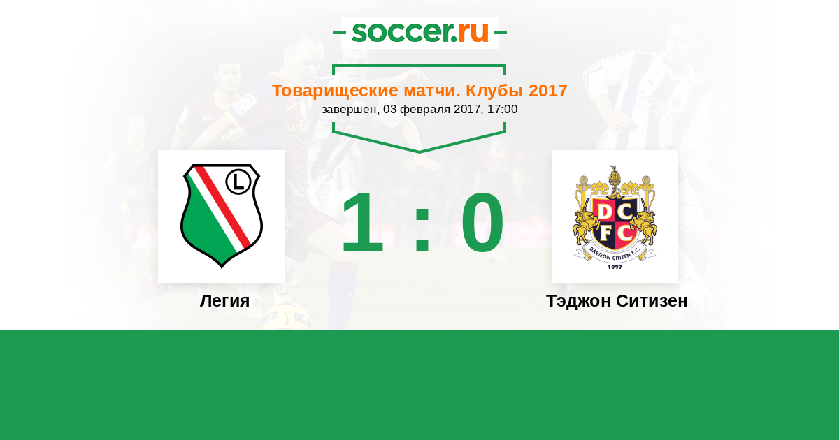 Легия - Тэджон Ситизен : обзор матча 3 февраля 2017