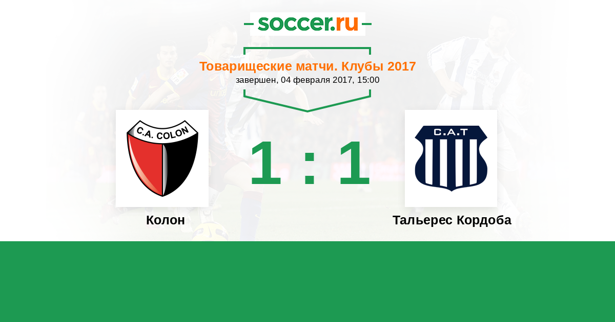 Колон - Тальерес Кордоба: обзор матча 4 февраля 2017