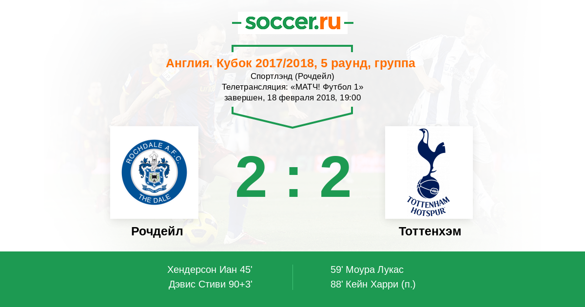Рочдейл - Тоттенхэм: обзор матча 18 февраля 2018