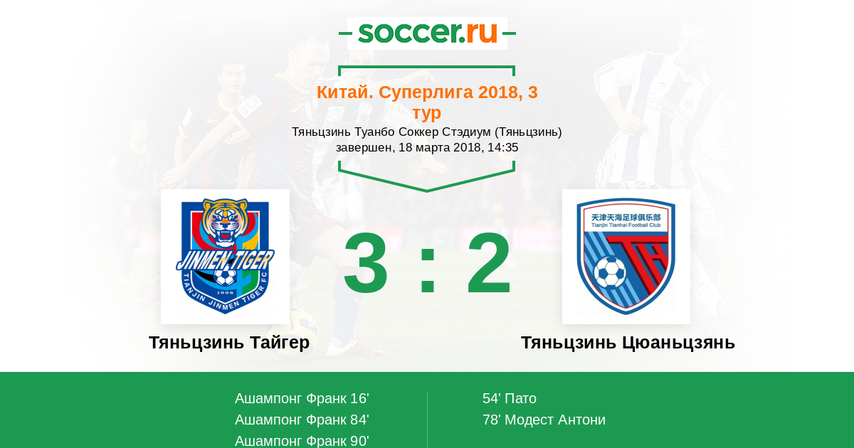 Тяньцзинь Тайгер - Тяньцзинь Цюаньцзянь: обзор матча 18 марта 2018