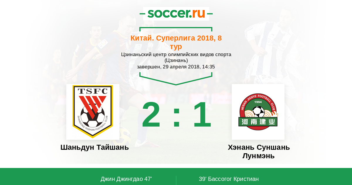 Шаньдун Тайшань - Хэнань Суншань Лунмэнь: обзор матча 29 апреля 2018