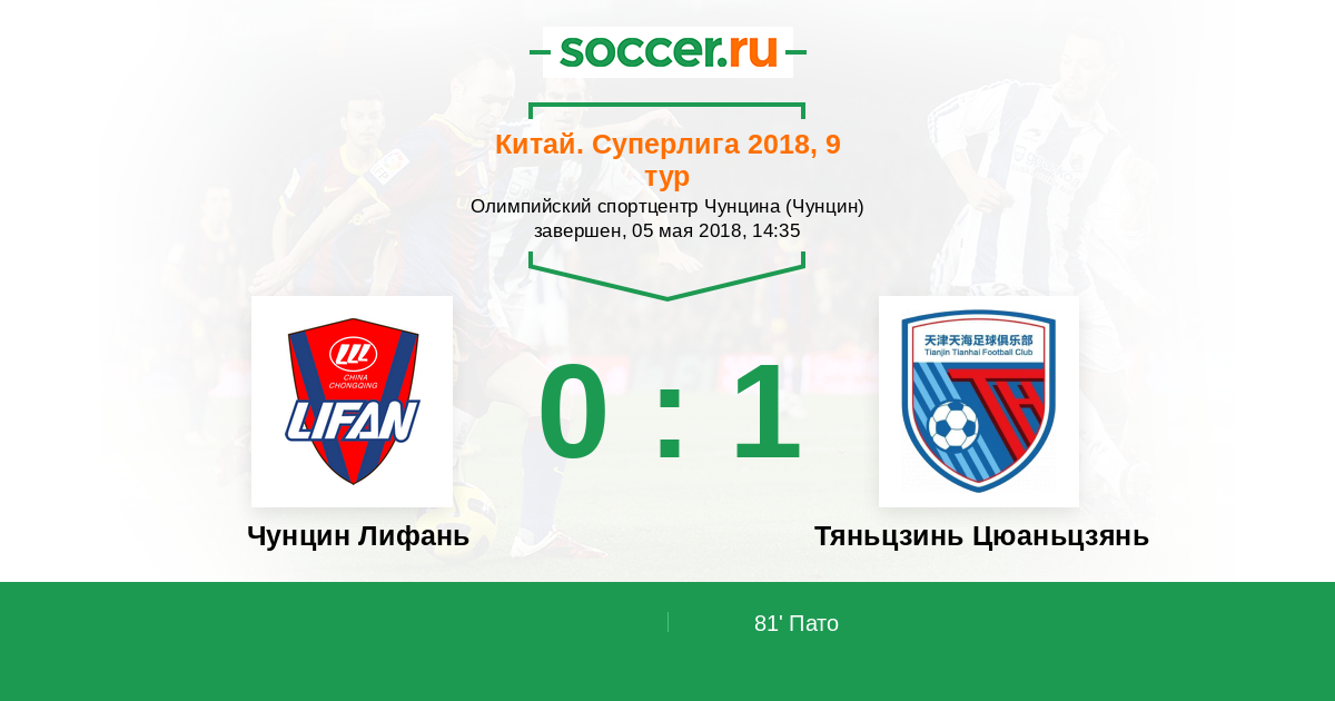 Чунцин Лифань - Тяньцзинь Цюаньцзянь: обзор матча 5 мая 2018