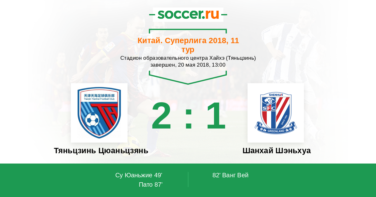 Тяньцзинь Цюаньцзянь - Шанхай Шэньхуа: обзор матча 20 мая 2018