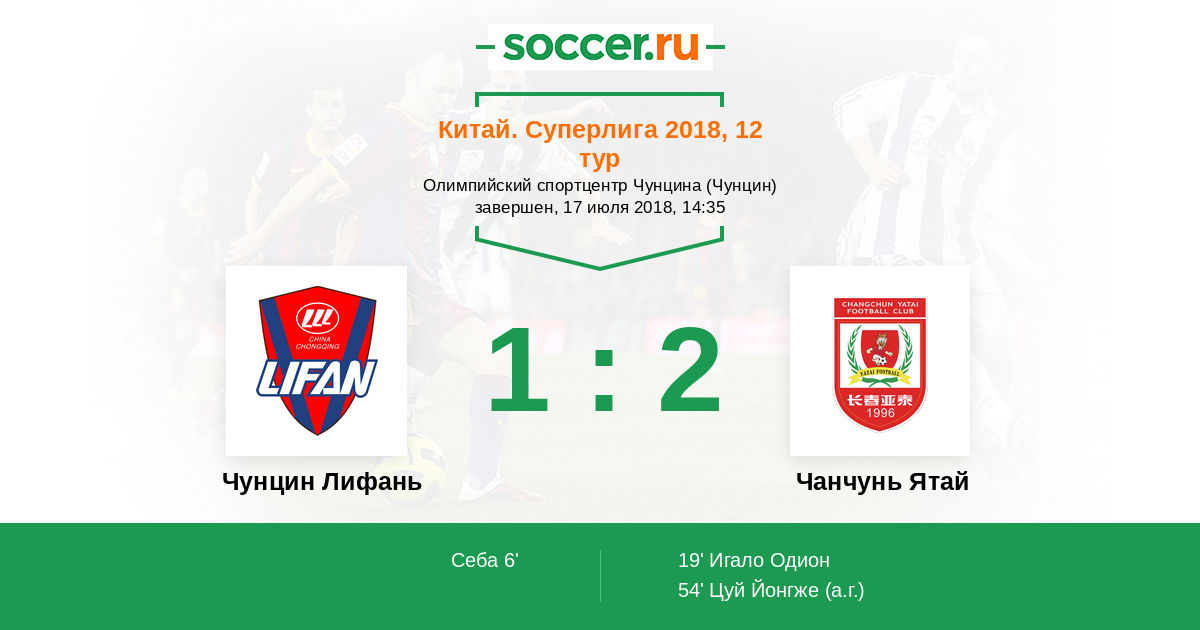 Чунцин Лифань - Чанчунь Ятай: обзор матча 17 июля 2018