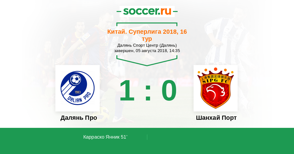 Далянь Про - Шанхай Порт: обзор матча 5 августа 2018