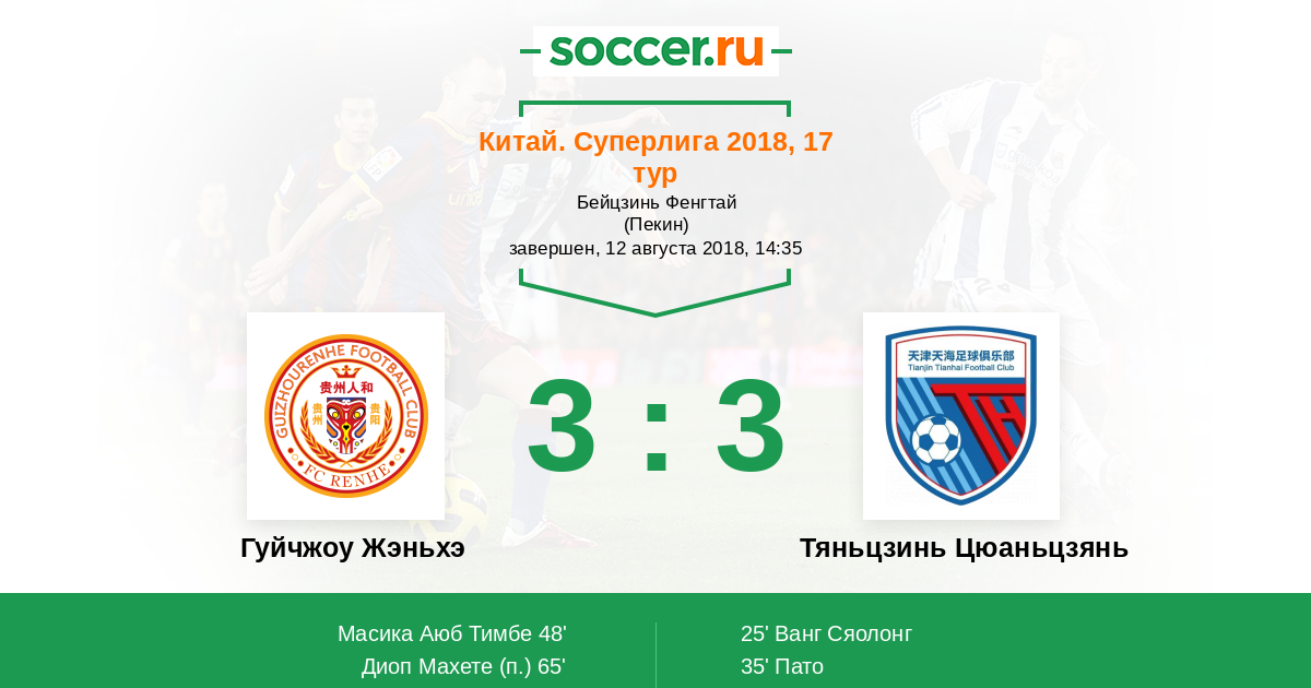 Гуйчжоу Жэньхэ - Тяньцзинь Цюаньцзянь: обзор матча 12 августа 2018