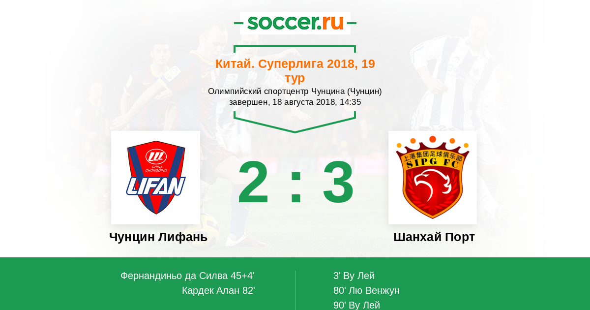 Чунцин Лифань - Шанхай Порт: обзор матча 18 августа 2018