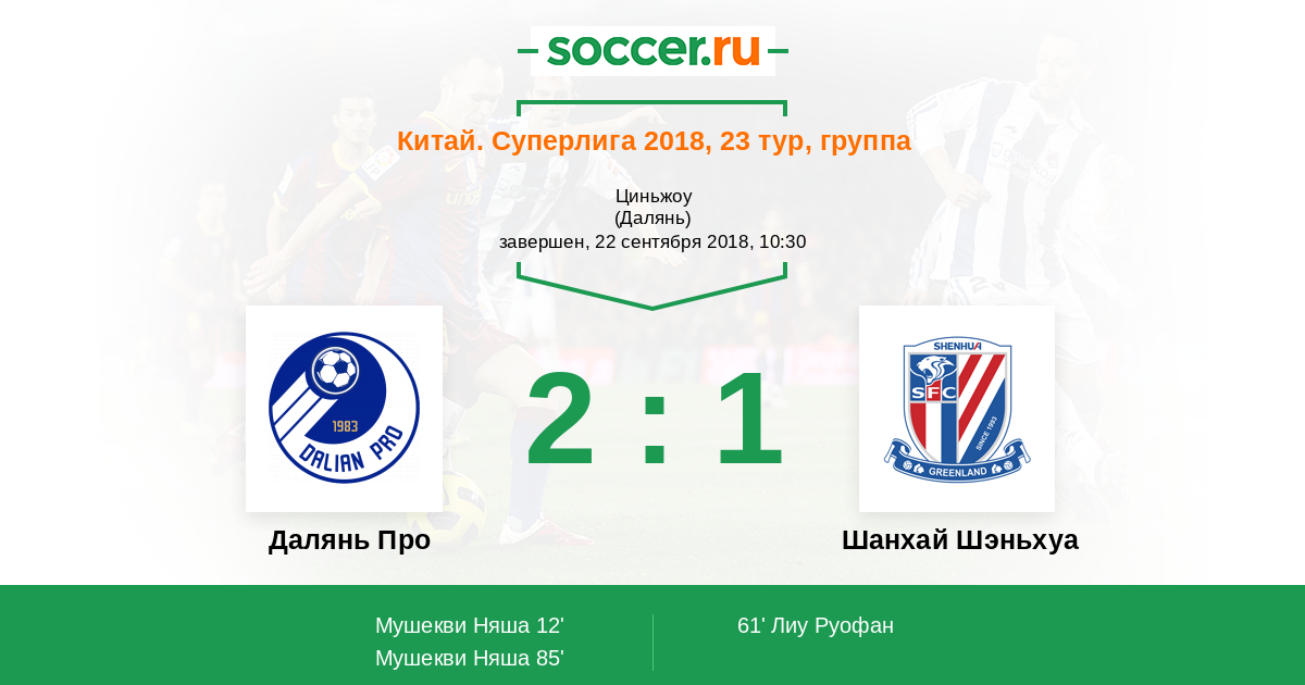 Далянь Про - Шанхай Шэньхуа: обзор матча 22 сентября 2018