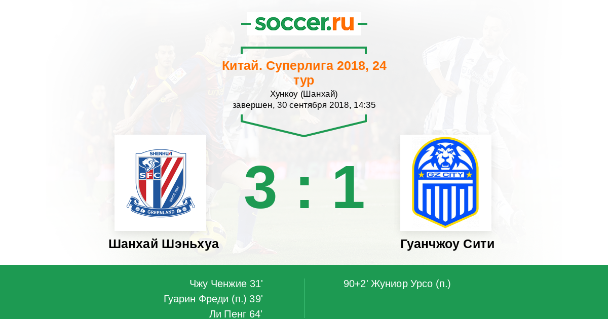 Шанхай Шэньхуа - Гуанчжоу Сити: обзор матча 30 сентября 2018