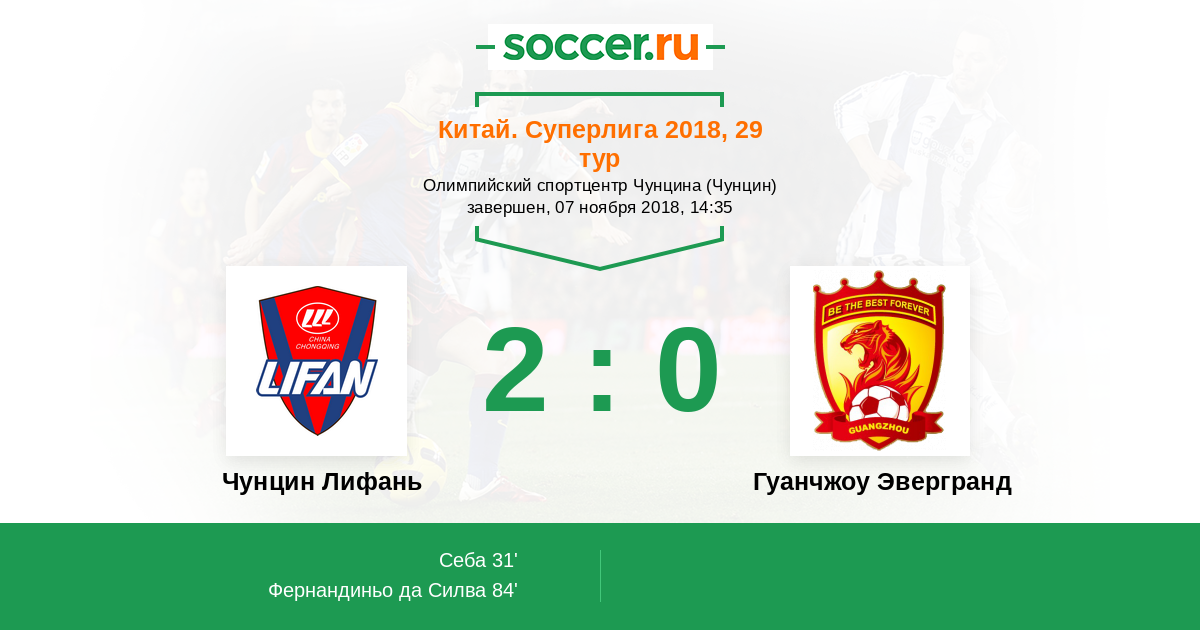 Чунцин Лифань - Гуанчжоу Эвергранд: обзор матча 7 ноября 2018