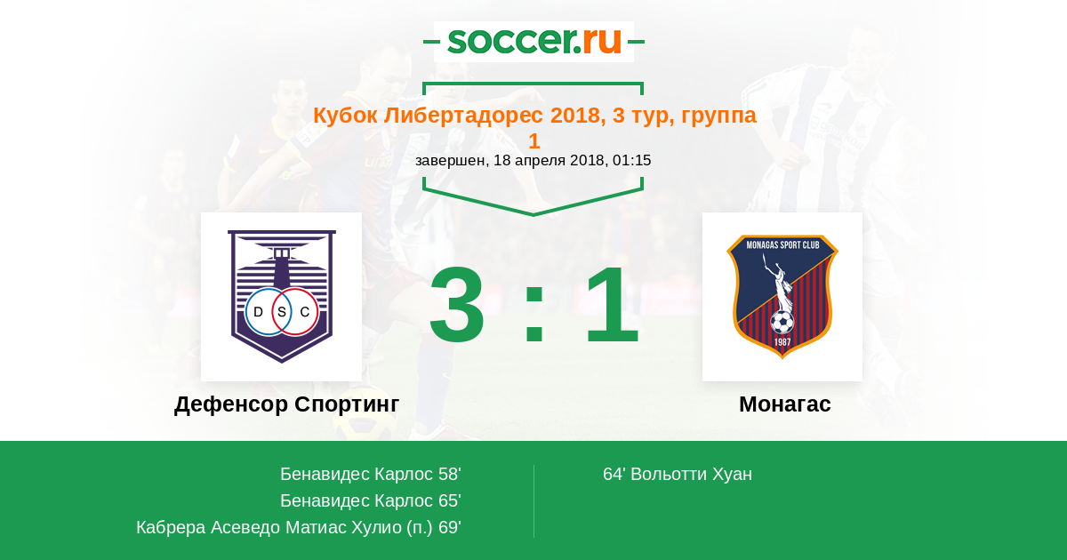 Дефенсор Спортинг - Монагас: обзор матча 18 апреля 2018