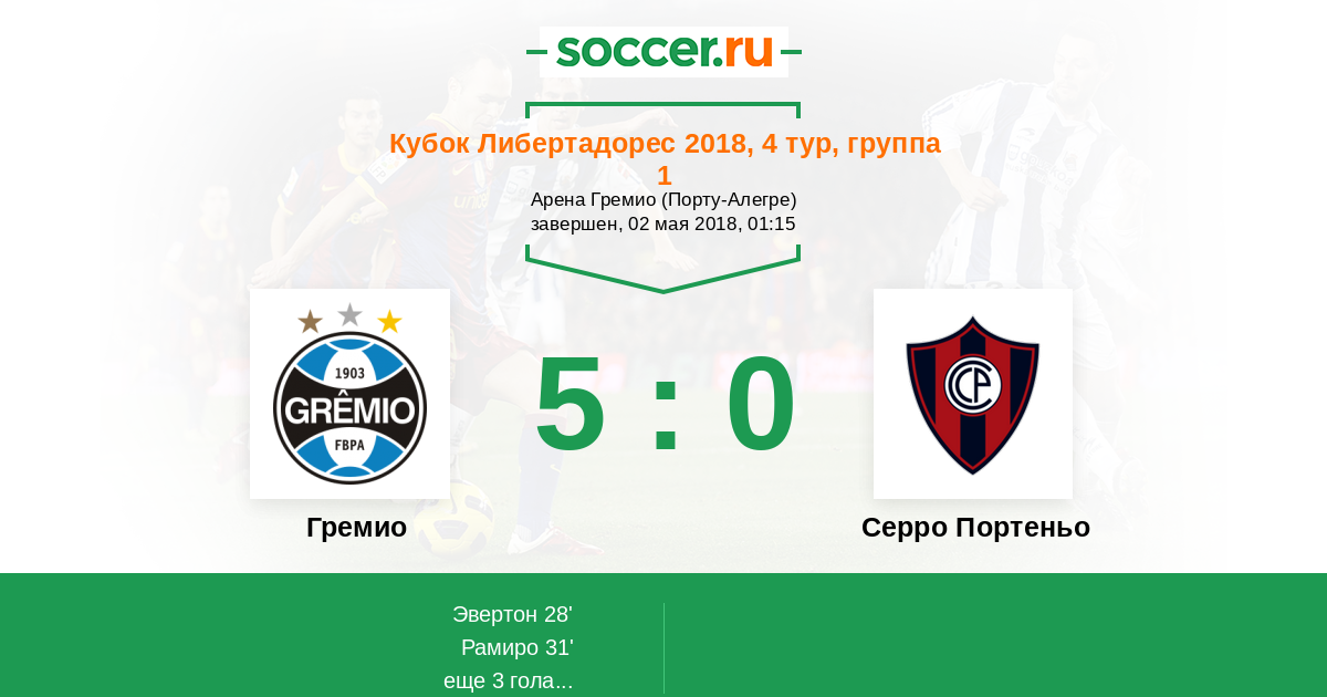 Гремио - Серро Портеньо: обзор матча 2 мая 2018